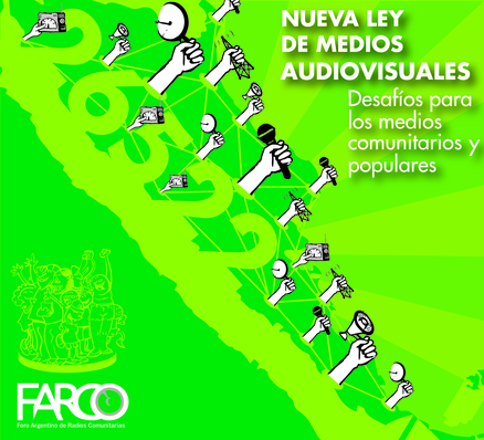 "Desde FARCO convocamos a cientos de actores sociales, sindicales, universitarios, artistas, actores, productores, formando la Coalición por una Radiodifusión Democrática. Desde allí fuimos capaces de construir la fuerza necesaria para que la Ley llegara al Congreso, y diputados y senadores la sancionaran. Lleva el número 26.522, se la denomina formalmente “Ley de Servicios de Comunicación Audiovisual”. La consideramos nuestra Ley. Sabemos que un nuevo modelo de comunicación no se construye solamente con una nueva Ley. Pero sin ella, se vuelve una tarea imposible. En todos estos años de trabajo, las radios comunitarias de FARCO hicimos más que pelear por la legalidad: nos capacitamos en producción informativa y periodística, locución, técnicas de educación popular, operación técnica, entre muchos otros temas. Convocamos miles de veces a las organizaciones de la comunidad a sumarse a nuestras iniciativas y participamos otras miles de propuestas impulsadas por otros/as, sabiendo que la construcción colectiva es una de las claves para democratizar la sociedad. Tuvimos que rompernos la cabeza para conseguir financiamiento, ya sea vendiendo avisos a la verdulería o la panadería del barrio, como así también presentando proyectos en organismos nacionales o internacionales. Hicimos de todo, o casi todo. Muchas emisoras quedaron en el camino, también. Hoy vemos con optimismo que haya una nueva movilización social por generar nuevos medios de comunicación populares y comunitarios, a partir del impulso que brinda esta ley democrática de cuya construcción fuimos parte activa. Quisiéramos que muchas nuevas radios y emprendimientos culturales y de comunicación surjan desde el pueblo para darle más democracia a la comunicación, y más comunicación a la democracia. Sin embargo, sabemos que no solamente creando muchos medios nuevos ese resultado será posible. Necesitamos también fortalecer lo existente, valorar lo que tenemos, y mejorarlo. Una frase bien conocida dice que “hecha la ley hecha la trampa”. En este caso, creemos necesario afirmar que uno de los principales desafíos de este momento histórico es construir “la trama”, es decir, ese tejido social que en su intercambio proponga otras miradas de la misma realidad." (Introducción, página 2-3)
