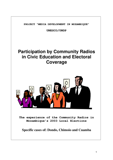 Participation by Community Radios in Civic Education and Electoral Coverage: The Experience of the Community Radios in Mozambique's 2003 Local Elections. Specific Cases Of: Dondo, Chimoio and Cuamba