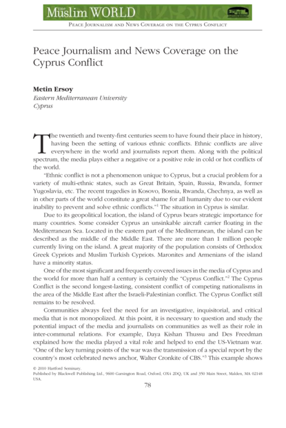 "This study presents definitive evidence that news coverage in Cyprus does not contribute to peace building. In light of the renewed negotiations in Cyprus for reunification, the Cypriot media should engage in responsible reporting. It is of utmost importance that Peace Journalism is introduced and supported in Cyprus now. There is a prevailing perception among journalists that as “I write the report, I don’t care about the rest” or “My business is news reporting, don’t put additional burdens on my shoulders.” Traditional journalists should first of all accept the fact that their practice of news reporting is problematic. It is not possible to come up with a solution to a problem without first acknowledging that there is a problem. Many journalists do not bother allowing room for statements of the parties facing incrimination in a news story, nor do they bother about enriching their news sources. Likewise, most journalists abide by state and government oriented news reporting, thus only considering the statements made by state authorities as stories having news value. They tend to report only the apparent or visible parts of a story or the action itself. In other words, most do not make an effort to do process-based and investigative reporting that also reveal the invisible parts of the story. Doing research and seeking to uncover the invisible entails arduous work and takes time." (Conclusion, page 93-94)