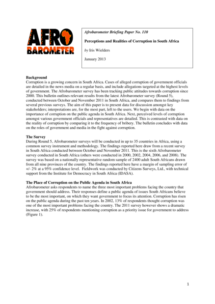 Perceptions and Realities of Corruption in South Africa