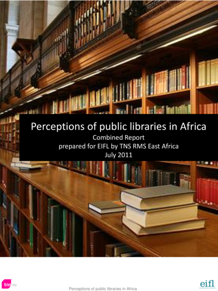 "The report presents key findings of the research in six countries: Ethiopia, Ghana, Kenya, Tanzania, Uganda and Zimbabwe. Findings were that most people believe public libraries have the potential to contribute to community development in important areas such as health, employment and agriculture. However, libraries are small and under-resourced, and most people associate them with traditional book lending and reference services, rather than innovation and technology." (https://www.eifl.net)