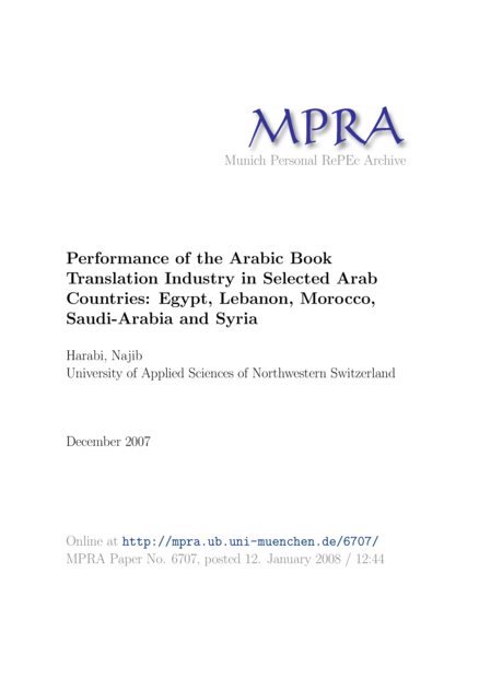 Economic Performance of the Arabic Book Translation Industry: An Overview And Synthesis / Najib Harabi, 3