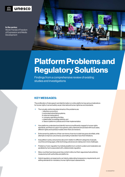 "The proliferation of hate speech and disinformation on online platforms has serious implications for human rights, trust and safety as per international human rights law and standards. The mutually-reinforcing determinants of the problems are: ‘attention economics’; automated advertising systems; external manipulators; company spending priorities; stakeholder knowledge deficits; and flaws in platforms’ policies and in their implementation. How platforms understand and identify harms is insufficiently mapped to human rights standards, and there is a gap in how generic policy elements should deal with local cases, different rights and business models when there are tensions. Enforcement by platforms of their own terms of service to date has grave shortfalls, while attempts to improve outcomes by automating moderation have their limitations. Inequalities in policy and practice abound in relation to different categories of people, countries and languages, while technology advances are raising even more challenges. Problems of ‘solo-regulation’ by individual platforms in content curation and moderation are paralleled by harms associated with unilateral state regulation. Many countries have laws governing content online, but their vagueness fuels arbitrary measures by both authorities and platforms. Hybrid regulatory arrangements can help by elaborating transparency requirements, and setting standards for mandatory human rights impact assessments." (Key messages)