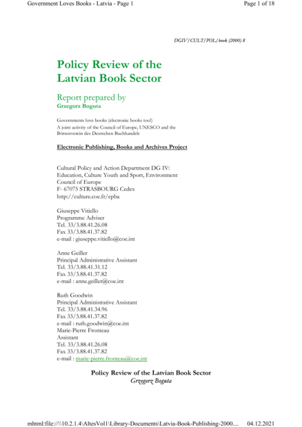 Strasbourg: Council of Europe, DG IV: Education, Culture, Youth and Sport, Environment. Cultural Policy and Action Department (2000), [18 pp.]