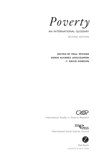 "This second edition of this highly-successful glossary provides an exhaustive and authoritative guide to over 200 technical terms used in contemporary scholarly research on poverty. It seeks to make researchers, students and policy makers aware of the multi-dimensional and complex nature of this social condition. This revised edition includes a range of new entries to keep pace with an expanding field of discourse, an extended set of references, and further perspectives from developing countries. A particular effort has been made to incorporate non-Western approaches and concepts." (Back cover)