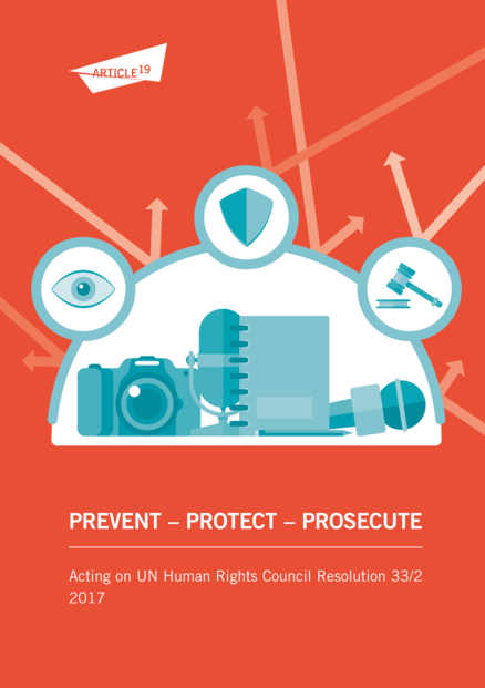 "In September 2016, the UN Human Rights Council (HRC) broke new ground with the unanimous adoption of HRC Resolution 33/2 on the safety of journalists. The HRC is the world’s highest human rights body and its resolutions are a strong collective commitment from States to act on priority human rights violations and abuses. On paper, the Resolution is the most ambitious global agenda yet to act on the safety of journalists. However, the reality for journalists facing daily threats and attacks remains dire [...] This important UN resolution must be met with action from States if it is going to ensure safety for journalists and end impunity for crimes against them. To break the cycle of violence, HRC Resolution 33/2 commits States to act on three fronts to: prevent, protect, and prosecute [...] Is HRC Resolution 33/2 legally binding? No. The HRC is a political body constituted by States (rather than by international judges or independent experts), and its resolutions constitute political commitments. Nevertheless, HRC Resolution 33/2 is a significant commitment by States to take action. It is rooted in their international human rights law obligations, and gives an insight into how States view their legal obligations relating to the safety of journalists." (Introduction, page 5-6)