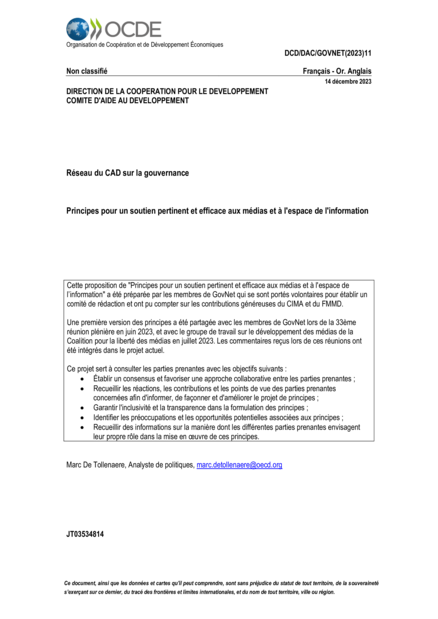 Principes pour un soutien pertinent et efficace aux médias et à l'espace de l'information