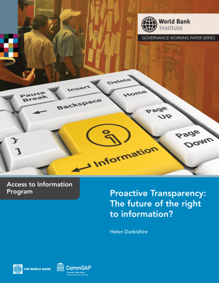 "This paper identifies four primary drivers of proactive disclosure throughout history. The first is the need to inform the public about laws and decisions and the public’s right to be informed, to know their rights and obligations. The second is the public’s demand for the information needed to hold governments accountable both at and between elections. The third is the demand for information in order to participate actively in decision-making. The fourth is the provision to the public of information needed to access government services, which has expanded significantly in the past decade with growth of electronic access to services or “egovernment.” [...] The recently adopted legal frameworks which include proactive disclosure regimes (Section 3) point to an emerging standard on the classes of information which should be made available at the core of any national proactive disclosure regime. The national standards are reiterated and complemented by provisions by international international bodies (Section 4). These international provisions make clear that, in addition to having numerous benefits for public bodies and for members of the public, proactive disclosure is an obligation that is part of the right of access to information. From comparing the national and international provisions it is possible to identify a set of 14 core-minimum of classes of information for proactive disclosure." (Executive summary, page 1)