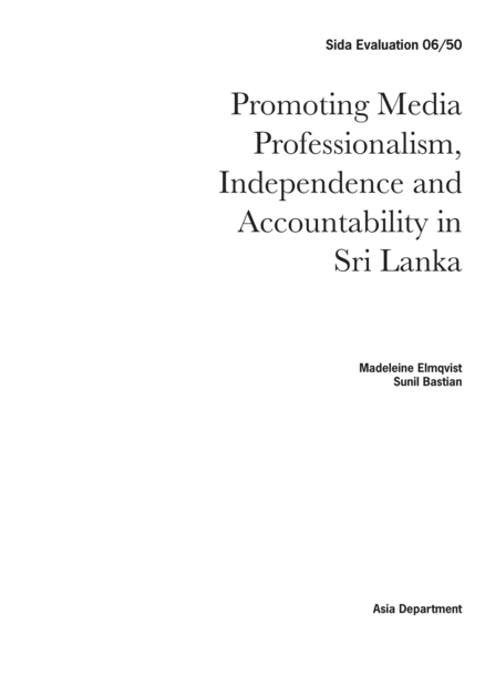 "This is an evaluation of the project “Promoting Professionalism, Independence and Accountability in Sri Lanka” under the Sri Lanka Press Institute, SLPI. SLPI has two major departments: the Press Complaints Commission of Sri Lanka, PCCSL, and the Sri Lanka College of Journalism, SLCJ. PCCSL is a self-regulatory body for press ethics, while SLCJ is running a one-year diploma course in journalism and a number of short term mid-career courses for working journalists. The major funding of the SLPI has come from Sida and Norad for the period 2003–2006. This has been supplemented by funding from DANIDA towards the end of this period. The Institute for Further Education of Journalists, Fojo, has been the Swedish partner to SLPI to support institutional capacity building [...] During a short duration of less than three years SLPI has achieved a lot. The institute is up and running. Most of the practical aspects of setting up an institute have been achieved. In addition, a whole new section for the training of TV and radio journalists which was not on the original plan has been established. Most journalists we met agreed about the concept of self-regulation and commended the SLPI for pioneering the concept. The courses conducted by the College and Fojo have acceptance within the media industry. Despite these achievements, SLPI has been going through a certain degree of turmoil in recent times, mainly linked to management issues. Hence the organisation has entered a period where it needs to sort out these issues and consolidate itself." (Executive summary)