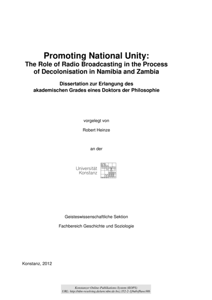"This thesis operates from the observation that "Decolonising the Mind", i.e. a cultural decolonisation process, was needed after the independence of African countries to support and flesh out political decolonisation. Culture, as shown, played a major role in the mobilisation of support for nationalist movements, but after independence nationalist culture was just one among many. In both cases presented here, the most pressing issue after political independence was how to deal with the different identities that had previously existed and were onyl partially cushioned by political and cultural nationalism. Now that the political kingdom had been attained, the different language, cultural and political groups started to ask questions about their place in this kingdom. Although many politicians shared the idea that "once you have a national identity, the question of culture becomes something which flows automatically", it soon turned out to be misguided. Media and education were seen to be the major tools in "decolonising the mind". However, a close analysis of the electronic media in the two cases presented here shows that the policies for promoting national unity in programmes were largely ineffective. Instead, radio programmes, both before and after independence, provided a space to negotiate issues of national identity. This space was sometimes more, sometimes less restricted, but listeners used it as much as they could.