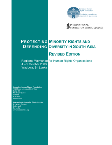 Protecting Minority Rights and Defending Diversity in South Asia: Regional Workshop for Human Righs Organisations 4-9 October 2003