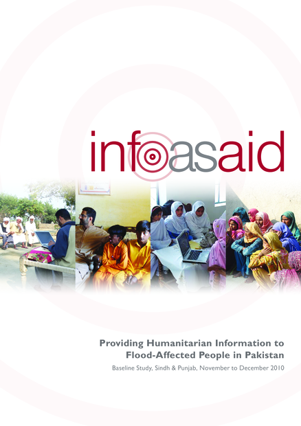 "More than 20 million people in Pakistan were affected by the worst floods in the country’s history in late July 2010 [...] The humanitarian response included efforts to inform people about the services available, and communicate with them about accessing these services. It also included efforts to provide platforms by which people could tell the aid workers about particular help they needed or register complaints about services. However, during the flood response, there was no consistent, broad research that could indicate which communication efforts were most effective. This study is an attempt to start providing this data, and thereby directly support the communication plans and efforts of humanitarian organizations. It assesses the impact of humanitarian information provided to flood-affected populations in Sindh and Punjab three months after the flood, and examines to what degree people received information about help available and how well that information enabled people to get that help and to help themselves." (Executive summary, page 2)