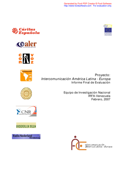 Caracas; Quito: IRFA-Venezuela, Equipo de Investigación Nacional;Asociación Latinoamericana de Educación Radiofónica (ALER) (2007), 117 pp.