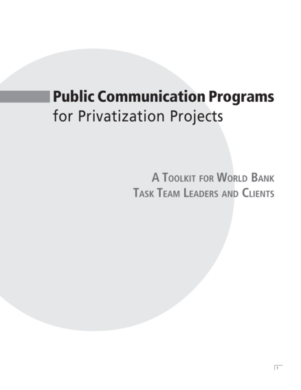 Public Communication Programmes for Privatization Projects: A Toolkit for World Bank Task Team Leaders and Clients