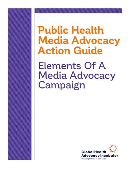 "Changing public health policy is one of the most effective ways to improve public health on a population-wide scale. As part of the advocacy campaign to move a public health issue onto the policy agenda and through the policy making process, a strategic and well executed media advocacy campaign is critical. The primary components of a media advocacy campaign are the same regardless of the desired policy outcomes, just customized to meet the specific objectives. This guide is designed to help civil society organizations plan and conduct effective media advocacy campaigns that will result in the adoption and implementation of strong, effective public health policies." (About the guide)