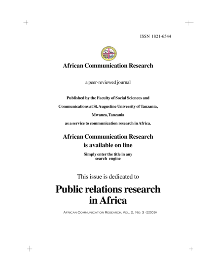 Do public relations in Africa use research? A comparison of public and private organizations in Ghana / Kwesi Aggrey, 397