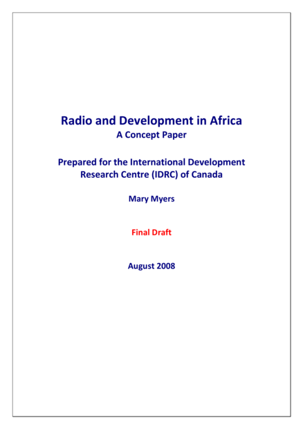 "Radio seems to have proven itself as a developmental tool, particularly with the rise of community and local radios, which have facilitated a far more participatory and horizontal type of communication than was possible with the older, centralised broadcasting model of the 1960s and 70s. There seems also to have been a re-discovery of radio in the context of new ICTs, a realisation that technology has made radio into a more two-way medium and that it can help bridge the digital divide by providing a powerful tool for information dissemination and access, especially for hard-to-reach rural audiences [...] Whilst there are some proven successes in terms of radio's development impact to date, there are still some question-marks over radio's impact. This report identifies and discusses the issues of gender and minority access and inclusion in radio broadcasting; the issue of inciting violence and radio's 'double-edged' nature in vulnerable societies; the whole question of sustainability and whether or not developmental - and/or 'public-service' - radio is a viable concern from an economic standpoint. Underlying all these questions remains the challenge of how precisely to measure the impact of radio; finding appropriate methodological tools and forums to do so; and the problem of defining and researching behaviour change." (Executive summary)