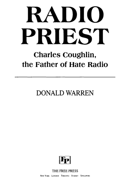 "For me, growing up in Detroit, Coughlin was a fascinating figure of local lore: both loved and hated, he was clearly someone whose career cannot be reduced to a single dimension. It may well be argued that the conventional standards of biography should not be applied to media figures, for theirs is a life of fused private and public selves. In the case of Charles Coughlin, to know the real man behind the microphone is certainly beyond the ken of the author. Here lies the particular dilemma of this study: how to discern whether the subject is the mirror of his audience or its manipulator. And this remains the problem regardless of how one feels about his message. Moreover, the temptation to obliterate this duality—inner versus other-directed self—must be set aside. For as a media personality Charles Coughlin was both the creator and the captive of his enthusiastic public." (Preface)