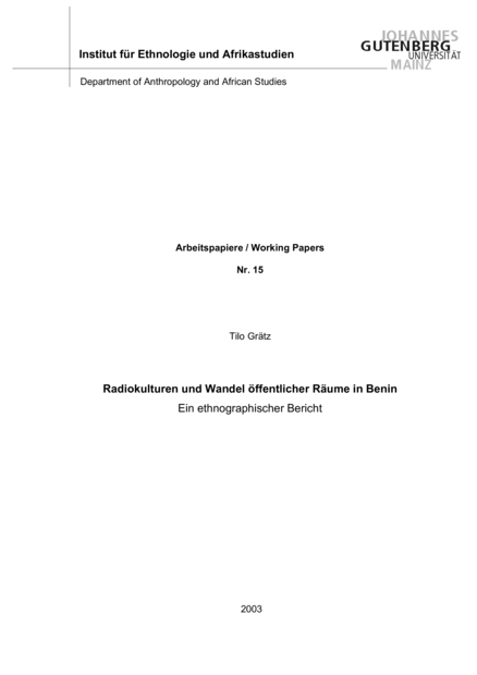 Radiokulturen und Wandel öffentlicher Räume in Benin: Ein ethnographischer Bericht