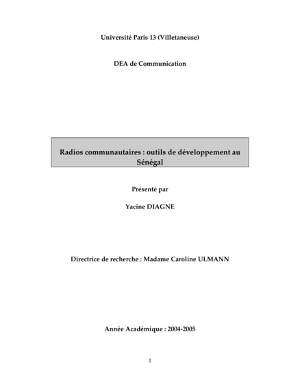 Paris: Université Paris 13 (Villetaneuse), DEA de Communication (2005), 185 pp.