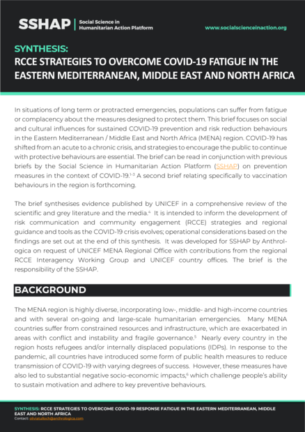 RCCE Strategies to Overcome COVID-19 Fatigue in the Eastern Mediterranean, Middle East and North Africa