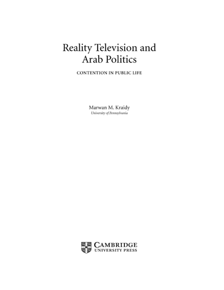"Based on a wealth of primary data collected during five years, Reality Television and Arab Politics analyzes how reality television stirred an explosive mix of religion, politics, and sexuality, fueling heated polemics over cultural authenticity, gender relations, and political participation in the Arab world. The controversies, Marwan M. Kraidy argues, are best understood as a social laboratory in which actors experiment with various forms of modernity, continuing a long-standing Arab preoccupation with specifying terms of engagement with Western modernity. Women and youth take center stage in this process. Against the backdrop of dramatic upheaval in the Middle East, this book challenges the notion of a monolithic “Arab Street” and offers an original perspective on Arab media, shifting attention away from a narrow focus on al-Jazeera and toward a vibrant media sphere that compels broad popular engagement and contentious political performance." (Publisher description)