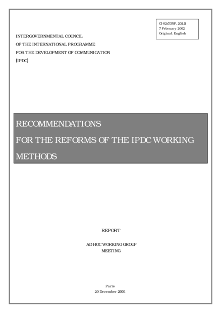 Paris: Intergovernmental Council of the International Programme for the Development of Communication (IPDC) (2001), 14, 33 pp.