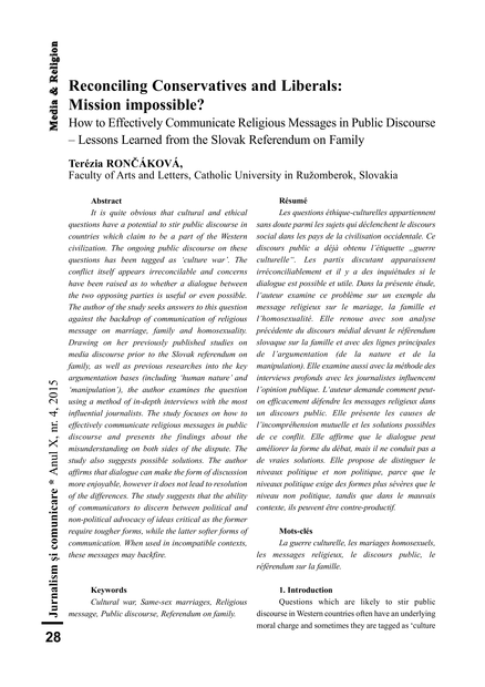 Reconciling Conservatives and Liberals: Mission Impossible? How to Effectively Communicate Religious Messages in Public Discourse. Lessons Learned from the Slovak Referendum on Family