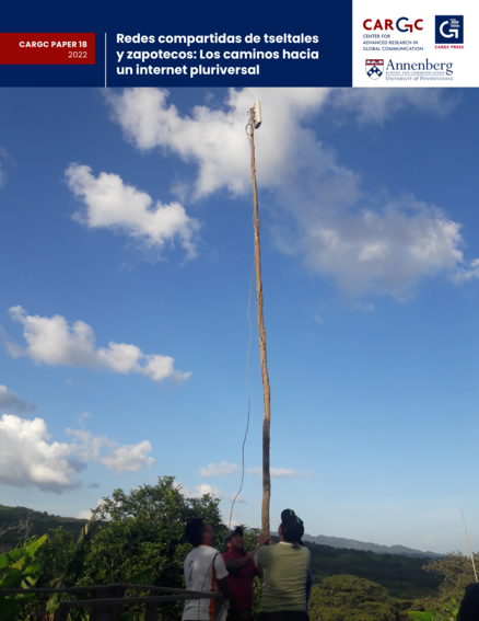 "Este trabajo de investigación examina el surgimiento de las redes compartidas en comunidades tseltales y zapotecas de Chiapas y Oaxaca (México): la primera milla de señal de internet compartido que articulan la infraestructura de interconexión y los valores de convivencia para extender el internet a zonas donde los servicios de los grandes proveedores de internet existentes no son satisfactorios o no están disponibles. En los estudios de caso analizados, los pueblos indígenas se convierten en co-diseñadores de internet al crear la infraestructura de sus propias redes locales e interconectarse con el internet global. Este documento sostiene que se materializa un híbrido a nivel de la interconexión de redes cuando la comunalidad o la forma de estas comunidades, apoyada en frecuencias sin licencia del espectro electromagnético, torres, antenas de radio, tejados de casas, routers y cables, se une a los valores de los proveedores de servicios de internet y a sus políticas. Las redes compartidas son el resultado de lo que estos arreglos establecen y limitan así como la evidencia de las vívidas luchas de las redes indígenas latino-céntricas hacia un internet pluriversal." (Resumen)