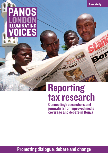 "In late 2009, three newspaper articles appeared in the Kenyan press, contributing to a newly emerging debate in the Kenyan media over government transparency and accountability. Media reporting in Kenya on governance issues, particularly in relation to corrupt practices in public spending, is not new. What was unusual about these articles was the attention they brought to the specific issue of taxation. Who is paying tax? Who is not paying tax? And what is happening to the revenue? Using evidence from a range of sources, these articles showed the potential for more in-depth questioning and scrutiny of tax issues by the Kenyan media, strengthening the role the media is playing in the development of Kenyan democracy. The three journalists who published the articles had all recently participated in a workshop for researchers, civil society organisations (CSOs) and Kenyan media representatives held in Kenya in November 2009. This workshop was part of a series of interventions delivered by Relay, a media and research communication programme. The Relay programme is managed by Panos London, which runs workshops and other activities with the other institutes within the Panos network, including Panos Eastern Africa. Relay provides training and facilitates relationship-building among key stakeholders to support more in-depth, research-informed media coverage of complex, under-reported or misreported development issues. The long-term goal is to generate public debate that can have an impact on policy and bring about much-needed change. This case study describes some of the methods and activities developed by Relay and how they were applied in Kenya to the issue of tax and governance. It offers a detailed and descriptive account of Relay’s series of workshop sessions, in particular." (Introduction)