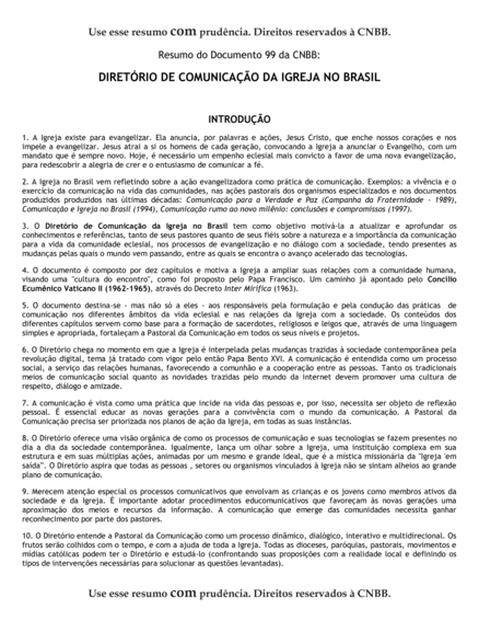 Resumo: Diretório de comunicação da Igreja no Brasil