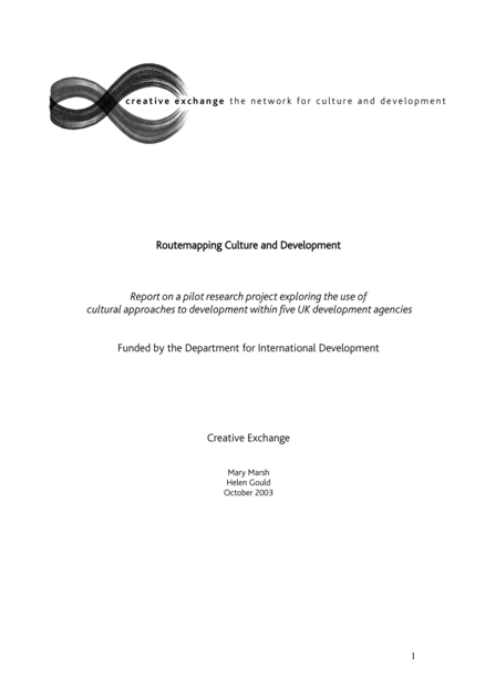 Routemapping Culture and Development: Report on a Pilot Research Project Exploring the Use of Cultural Approaches to Development Within Five UK Development Agencies