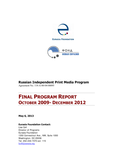 Russian Independent Print Media Program: Final Program Report October 2009-December 2012