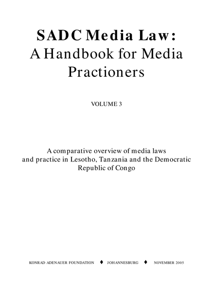 SADC Media Law: A Handbook for Media Practitioners. A Comparative Overview of the Laws and Practice in Lesotho, Tanzania and the Democratic Republic of Congo. Vol. 3