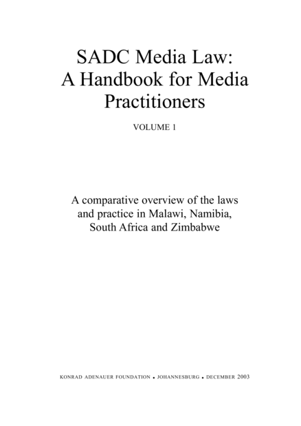 SADC Media Law: A Handbook for Media Practitioners. Vol. 1: A Comparative Overview of the Laws and Practice in Malawi, Namibia, South Africa and Zimbabwe