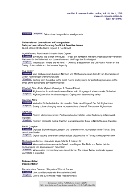 Introduction: Where are we now? - (almost) a decade with the UN Plan of Action on the Safety of Journalists and the Issue of Impunity / Ingrid Fadnes, Roy Krøvel & Kristin Skare Orgeret