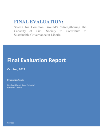 "Overall, the program set out what it achieved to do—namely to strengthen the institutional capacity of civil society organizations to improve their credibility, visibility, effectiveness and sustainability. There is evidence that many partner CSOshave refined theirmission, developed a multi-year strategic plan, a communications plan, a gender policy and an HR policy. In addition, they are beginning to integrate new financial reporting and M&E structures. All of the partner CSOs have improved their sustainability byreceiving additional funds to continue their work, and many of them hav developed strategies to diversify their revenue generation, such as expanding their offices to rent out board rooms. A number of organizations are eager to pass their new knowledge onto others, with many training peer CSOs on what they learned through the Search program. Finally, the program was effective in improving their own confidence, with all of the partner CSOs expressing their appreciation of the program, and in particular the freedom they had to define their own priorities and objectives.A number of lessons emerged during the course of implementation that are relevant for Search’s future work in civil society strengthening, as well as for other organizations working in this sector: 1. The participatory benchmarking approach is useful to help organizations track improvments in their organziational capacity over time. However, there was a tendency for CSOs to overstate what was possible within a limited timeframe. As a result, benchmarks were not consistently met, and many of the capacity-related development were not fully institutionalized by the project end. 2. The integration of radio programs with other civil society organizing approaches—town hall meetings, workshops, and house to house outreach—is an effective way to improve awareness and engagement of citizens in governance reform issues on a mass scale. 3. Programs to improve the capacity and sustainability of CSOs, and to professionalize the sector, are crucial but often overlooked, in efforts to improve local governance in fragile and trasitional countries such as Liberia. 4. There is a need to continue efforts to link civil society actors together for cohesive action and to further improve the enabling environment for civil society in Liberia by providing opportunities for CSOs to develop strategic collaborations, improve organizational capacity development, and attract donor funds to support their work." (Conclusions)