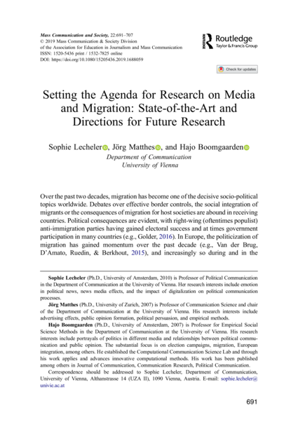 Mass Communication & Society, volume 22, issue 6 (2019), pp. 691-707