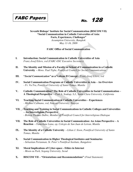 8 The Role of Catholic Universities in Social Communication: An Asian Perspective – A Reaction / Tamerlane Lana, 35