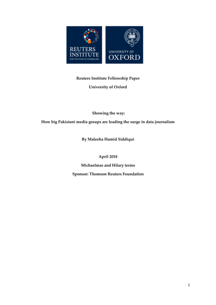 "Investigative journalism in Pakistan has a long and often violent history. Reporters face death threats, prison sentences and law suits but continue to publish. In her paper, Maleeha Siddiqui looks at how data journalism has given Pakistani journalists new tools to carry out their jobs, and suggests ways they can take their reporting to the next level." (Publisher description)