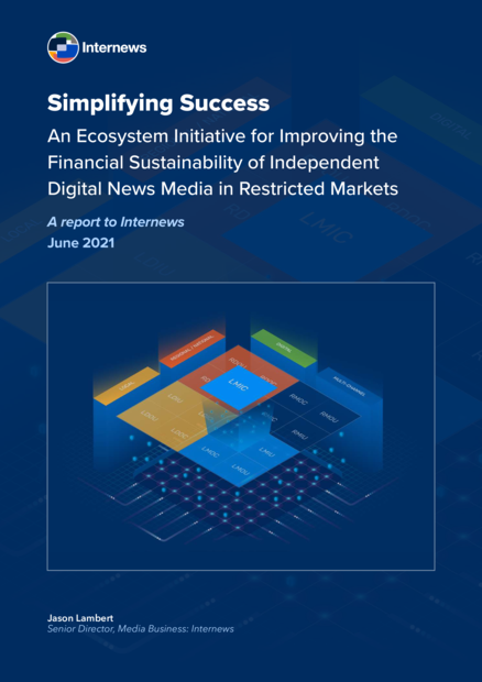 ""This report makes two primary suggestions. The first is adoption of a framework that classifies independent news media outlets in freedom-restricted countries. This research identifies a framework that uses four characteristics, derived from analysis of existing tools created by Internews, Newsgain and DW Akademie. Combining these characteristics yields 16 Media Types, each of which offer benchmarks according to resources, capabilities and future revenue expectations. Without disclosing a media outlet’s identity or location, these benchmarks can reveal how currently successful organisations like theirs are planning to generate revenue in the future. Second, the new framework should be embedded into a new online protocol and platform that will give immediate and actionable insights into media outlet performance. This ‘Digital Performance Navigator’ will be accessible to donors, implementers and media outlets and continuously fed with new data to refine the analyses and recommendations it makes. Rather than burying business performance data in reports, or having it spread across disparate systems, the Navigator will collect data and transform them into insights that can be used immediately – by media outlets and at sector level." (Executive summary, page 4-5)