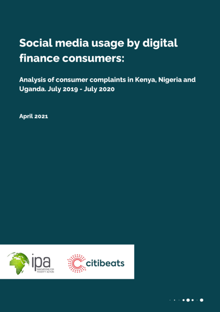 "Digital feedback has large potential for consumer protection. The customer experiences shared in the different social media channels have proven to be a rich source of information with the potential of answering a large number of questions. Who will make use of this data and methods going forward, and how will it benefit people? Regulators, who can apply new approaches to have automated tools for market monitoring, providing real-time statistics and early warning signs on action that should be taken, so that issues can be addressed earlier, with the potential for more cost-effective interventions; financial Inclusion donor organizations, which have a mandate to ensure that the growth of financial services goes in line with consumer protection and is socially responsible; Innovation for Poverty Action, by adding a new data approach to inform new experimental interventions; consumers themselves, as digital communities begin to form around creating transparent information about providers." (Executive summary)
