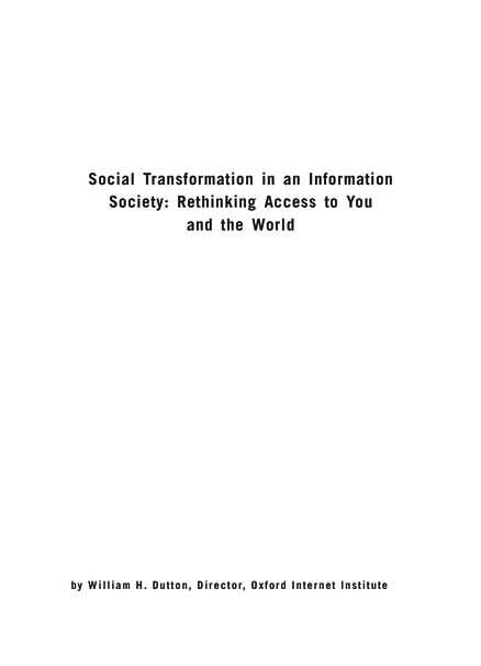 Social Transformation in an Information Society: Rethinking Access to You and the World