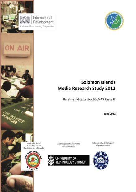 Solomon Islands Media Research Study 2012: Baseline Indicators for SOLMAS Phase III