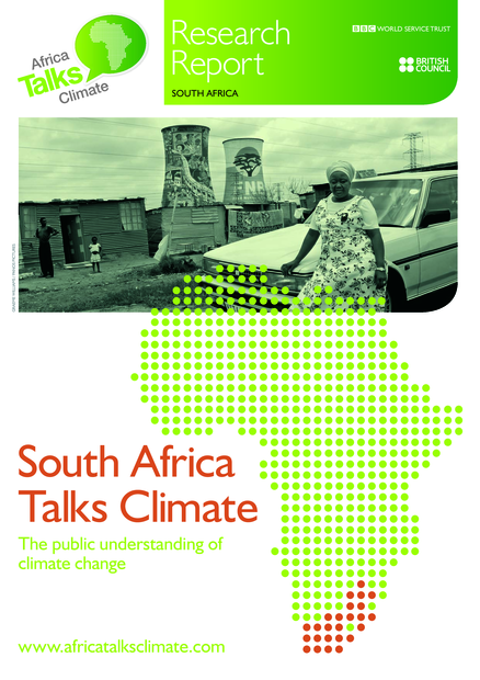 "Between August and October 2009, the BBC World Service Trust’s Research and Learning Group, funded by the British Council, conducted research in south africa to gauge public understanding of climate change. The research consisted of 16 focus group discussions with south african citizens, and 18 in-depth interviews with opinion leaders from government, religious institutions, the private sector, the media, and civil society. the overall objective was to find out what people think about climate change and to determine how to tailor communication and media strategies to support south africa’s response to climate change.