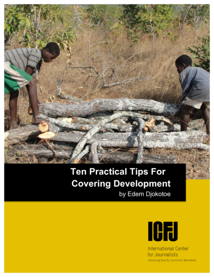 "By definition, development stories are big news in developing countries. The problem is media reports are typically just government announcements of infrastructure development – roads, bridges, hospitals, etc. – and official claims that lives will improve. Those articles turn off the reading and viewing public, and that has some editors pulling their staffs off this important coverage. But there can be much more to these stories. Here are 10 tips from Edem Djokotoe, Knight International Journalism Fellow in Malawi in 2010 and 2011. Djokotoe’s advice stresses less jargon and more people, impact and original reporting. It reminds us that we are writing for ordinary people – not development “experts” – to show them the implications of the events unfolding around them." (Page 1)