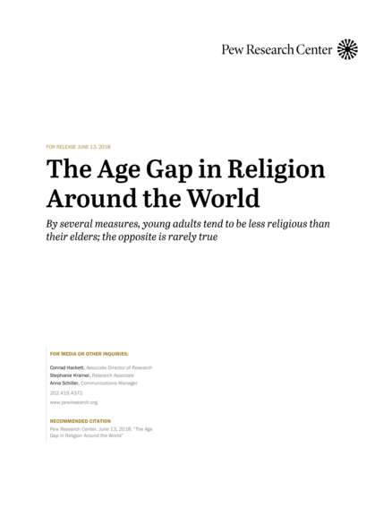 "Although the age gap in religious commitment is larger in some nations than in others, it occurs in many different economic and social contexts – in developing countries as well as advanced industrial economies, in Muslim-majority nations as well as predominantly Christian states, and in societies that are, overall, highly religious as well as those that are comparatively secular. For example, adults younger than 40 are less likely than older adults to say religion is “very important” in their lives not only in wealthy and relatively secular countries such as Canada, Japan and Switzerland, but also in countries that are less affluent and more religious, such as Iran, Poland and Nigeria." (Page 5)