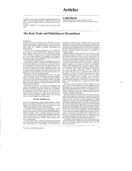 The early publishing scene -- Legal publications and the literary scene -- Academic publishing -- Trade publishers -- Political and specialised publications -- Newspapers -- Publishing trends for the 1990s -- Where to find Mozambican and Mozambique-related publications