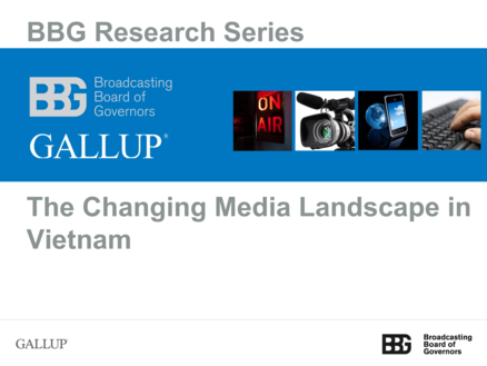 "Vietnam has a highly engaged, optimistic and entrepreneurial population and a rapidly changing media environment. Television remains the most used medium and the top source for news and information ¡V especially from official TV. Vietnam severely restricts its news media but Vietnamese want their media to present the country and its people in a positive light. Vietnamese adults tend to say they trust blogs more than official news, though serious blogging is very risky. Young people are pushing digital media forward by what they own and what they do digitally. Mobile is the dominant platform. Google, Facebook and YouTube are very widely used. Across demographic segments, conflicts in the South China Sea are seen as Vietnam¡¦s most serious problem and Vietnamese overwhelming support of Western involvement in resolving this issue." (Conclusions, slide 36)