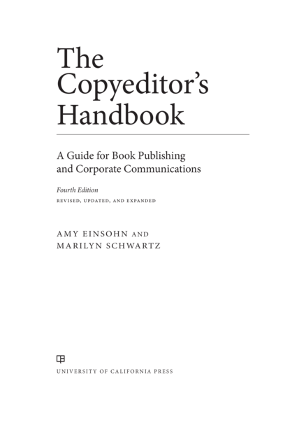 "The Copyeditor’s Handbook has become an indispensable resource both for new editors and for experienced hands who want to refresh their skills and broaden their understanding of the craft of copyediting. This fourth edition incorporates the latest advice from language authorities, usage guides, and new editions of major style manuals, including The Chicago Manual of Style. It registers the tectonic shifts in twenty-first-century copyediting: preparing text for digital formats, using new technologies, addressing global audiences, complying with plain language mandates, ensuring accessibility, and serving self-publishing authors and authors writing in English as a second language. The new edition also adds an extensive annotated list of editorial tools and references and includes a bit of light entertainment for language lovers, such as a brief history of punctuation marks that didn’t make the grade, the strange case of razbliuto, and a few Easter eggs awaiting discovery by keen-eyed readers." (Publisher description)